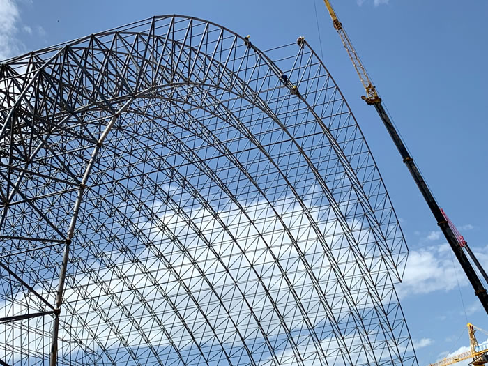 (2)网架加工前应对现场尺寸进行复测,确认无误后方可进行加工、安装;网架制作、运输、安装应遵守《空间网格结构技术规程》JGJ7-2010、《钢网架陇南螺栓球节点》JG/T 10-2009、《钢网架陇南螺栓球节点用高强度螺栓》 GB/T 16939-2016、《陇南钢结构陇南工程陇南施工规范》 GB50755-2012、《陇南钢结构陇南工程施工质量验收标准》 GB50205-2020。